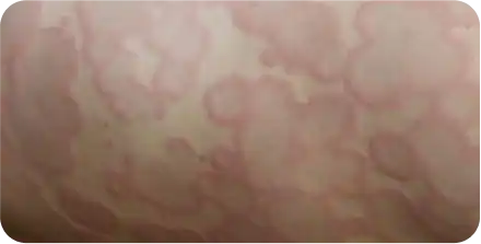 Могут быть от бледно-розового до ярко-красного цвета. По мере развития элементов отмечается более бледный центр волдыря с гиперемированной периферией - Разрешается бесследно в среднем в течение 24 часов